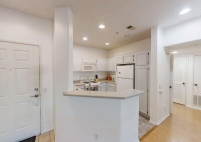 The kitchen opens to the family room and offers ample cabinetry and functional workspace, ideal for everyday living. The spacious bedroom includes generous closet space, and the unit is complete with in-unit washer, dryer, and refrigerator, adding to its turnkey appeal.