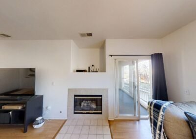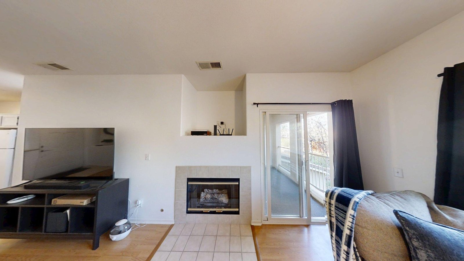 Recent updates include fresh interior paint, newly painted kitchen cabinets, and a professionally reglazed bath/shower, giving the home a clean, refreshed feel throughout. The open floor plan offers a comfortable living space featuring a cozy fireplace, recessed lighting, and laminate and tile flooring. A private covered balcony extends the living area and provides a peaceful outdoor retreat.