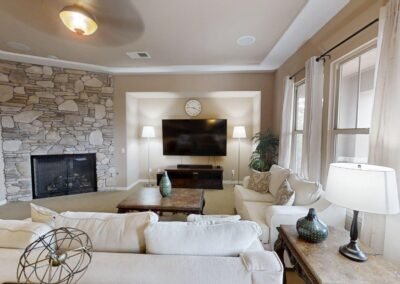 The thoughtfully designed floor plan features 5 bedrooms, including a main-level bedroom, 4.5 bathrooms, and abundant natural light throughout. The open kitchen is ideal for entertaining, offering granite countertops, premium appliances, a large center island, a butler’s pantry, and a walk-in pantry. The family room includes a cozy fireplace and oversized sliders that open to the patio for seamless indoor-outdoor living.