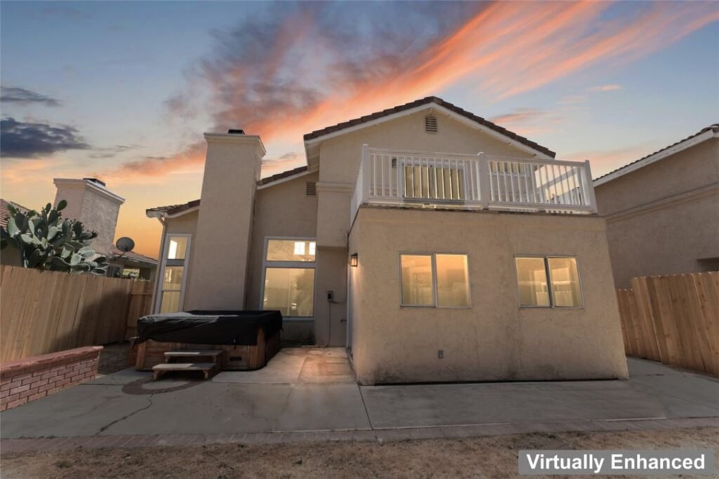 Upstairs, the primary bedroom features a private balcony, mirror-door closets, and an en-suite with stand-up shower and tiled floors. Two additional bedrooms and a full hallway bath complete the layout. The home also includes a two-car garage, and while the lot is modest at roughly 2,500 sq ft, the private backyard includes a hot tub and a bonus sunroom or patio space that could be used for hobbies, indoor gardening, or storage.