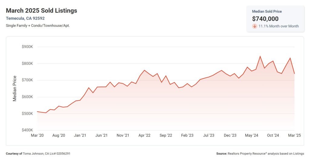 As of March 2025, the median sold price in ZIP code 92592 sits at $740,000, unchanged from the previous month. This consistency in pricing indicates ongoing demand and limited downward pressure, despite fluctuations in mortgage interest rates.